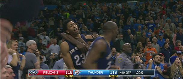 Anthony Davis hits desperation triple to win it for the @PelicansNBA! on.nba.com/1ADPfI9 #TacoBellBuzzerBeaters