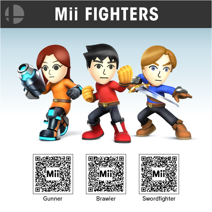 100% accurate recreations of the official default Mii Fighters to scan in to your game! By NeoGAF user Tyeforce.