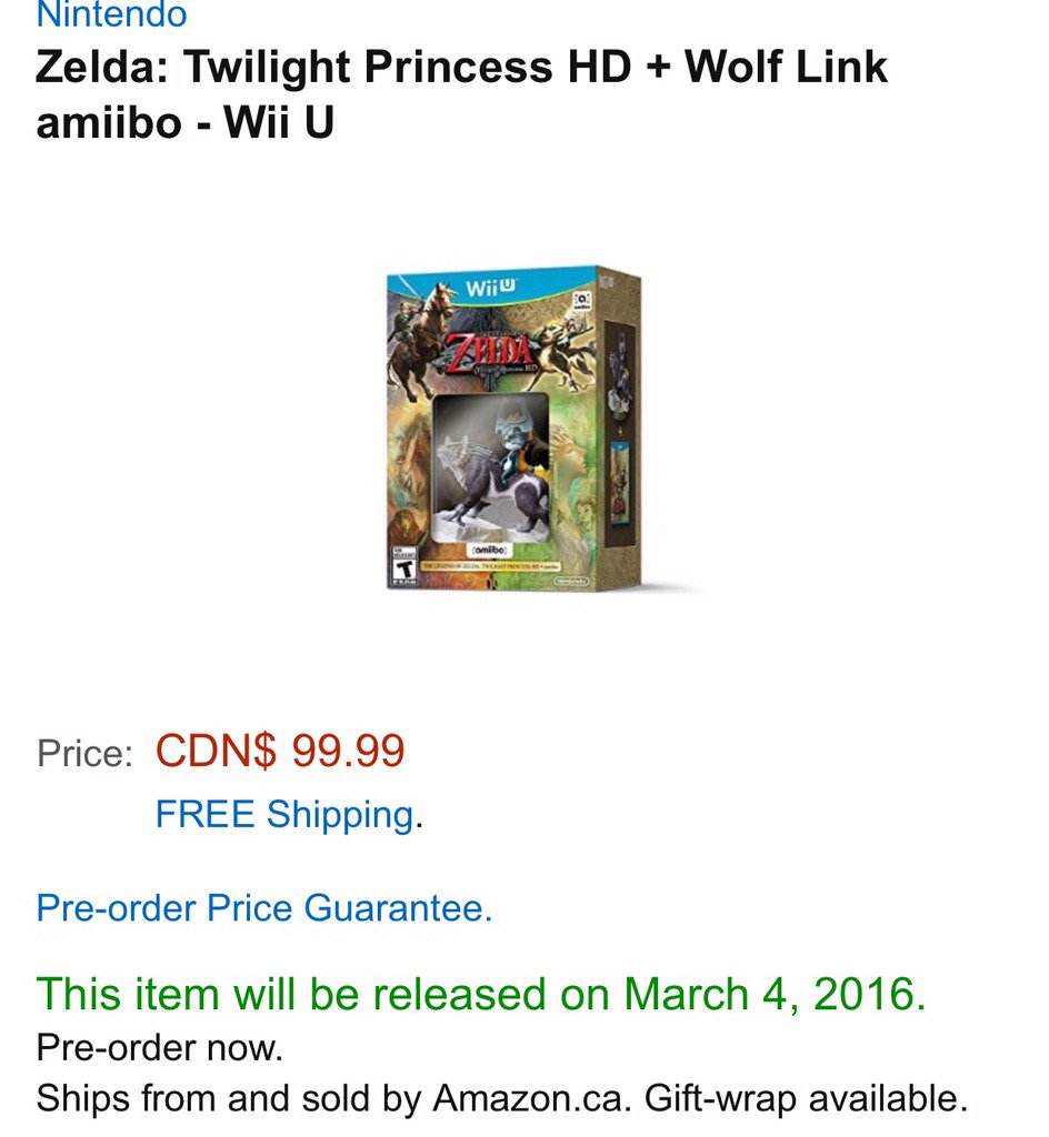 CANADA: Twilight Princess HD amiibo bundle is up at Amazon! goo.gl/1QPRkV