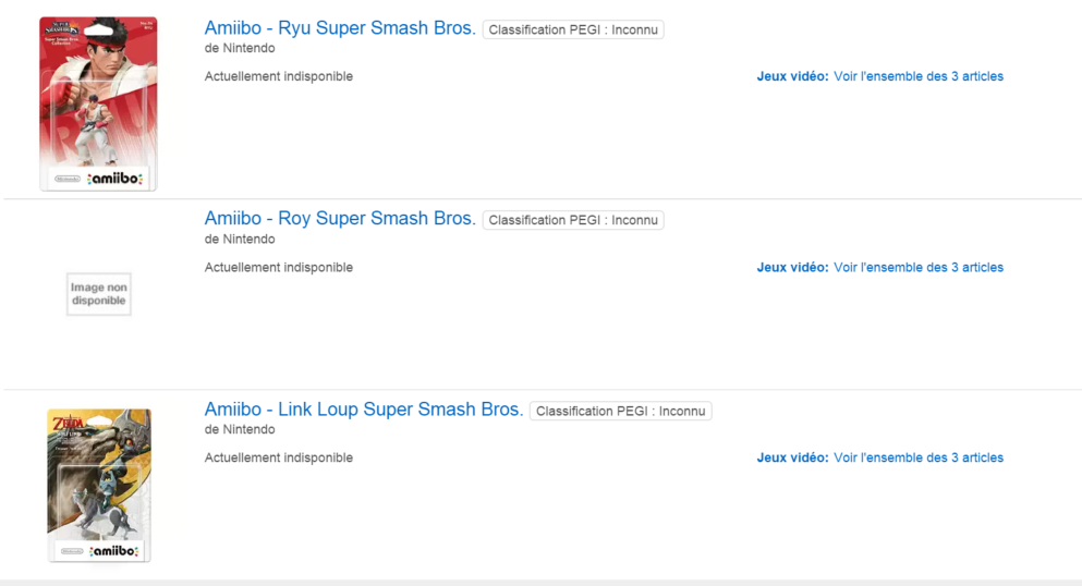 EUROPE: Ryu, Roy and Wolf Link placeholders on Amazon France, Germany, and Italy. NOT LIVE! amzn.to/1U4X3bu